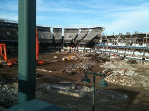Because, the tax payers really needed to buy a new one. Tell me we don’t live in corporate socialism. The new stadium has fewer seats at a higher cost. Our national pastime needs to be liberated. Only got these shots as I took the wrong train on my way to work. Sad I missed getting pictures of the two stadiums the city had for a few months.