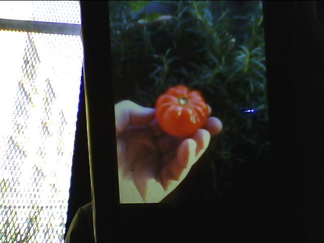 Month Three: The tomato plants were transferred to the roof in order to get maximum light since the window thingy just wasn’t working. Another urban farmer already took the small corner by the stairs – withered herbs, a very small tomato plant or two, but enough to take the space. These now expensive plants were brought to the south side of the building to be away from loft parties since beer cans and cigarette butts were all about that area of the roof. This placed them right up to the cell phone tower that is now mounted on the roof. The hum of the electric is rather loud, but not unpleasant. The tomatoes enjoyed greater light, but now a watering can had to be bought since water had to be hauled up two flights of stairs. This time, the Home Depot was used rather than the local hardware store. The one on 23rd Street in Manhattan – which is about as close to shopping local as one can get these days. This brought up the cost (we don’t pay for water here) to about $20 per plant. After about a week, the first tomato was harvested. Small, but tasty. It was used the same day it was picked to garnish a dinner made from food bought at C-Town.