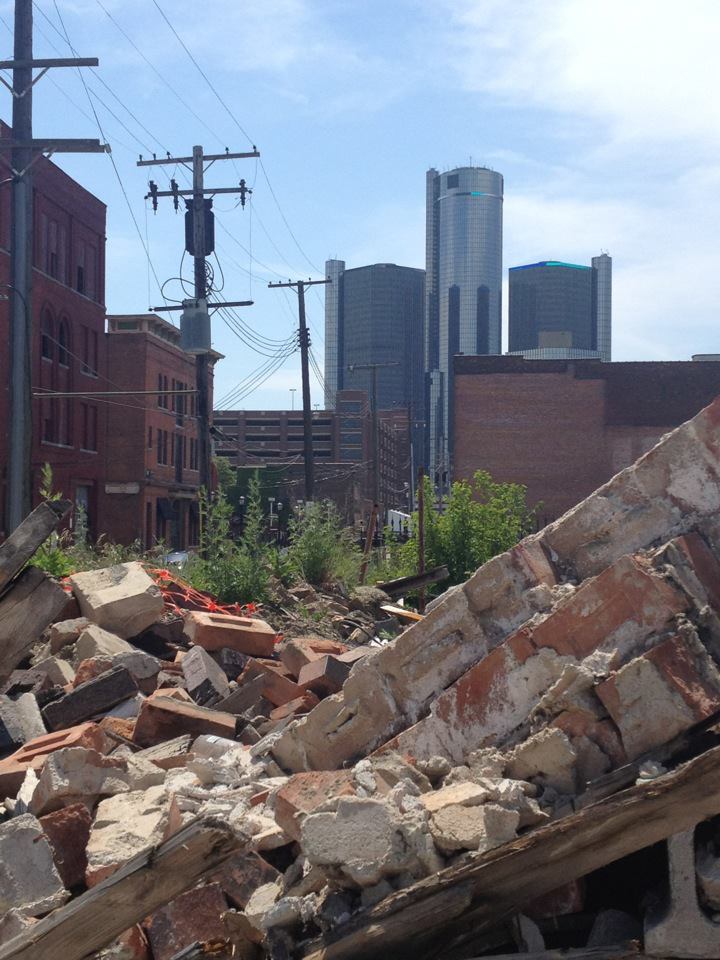 Having spend the past few days in Detroit, it is very obvious that we are a declining nation with a set of priorities that is way off. OK, so we needed to become more profitable. So we got rid of jobs. We had to get rid of the industrial past, so we got rid of industry. Thirty years into this process, where is Detroit’s KNOWLEDGE ECONOMY? Is it the 50% illiteracy rate of adults? The high infant mortality rate? The hundred and seventy or so acres of vacant land within the city limits poisoned by lead paint, asbestos siding, and creosote coated wood? The city government is closing schools, and by that, it is using a state of emergency in order to transfer a number of schools to private hands or the state. The Emergency Manager has imposed a set of austerity measures, canceled union contracts, and reduced services to an already constricted city to the point that they debated not sending the fire brigade out to put out vacant buildings on The Devil’s Night. Or buildings that were told were vacant. Since, lived in and abandoned often look very similar. Teachers have all been fired. They have to reapply for their jobs and still continue to take upon new initiatives. Taking a little ride about on a rented bike I took a tour of the brownfields of the city.