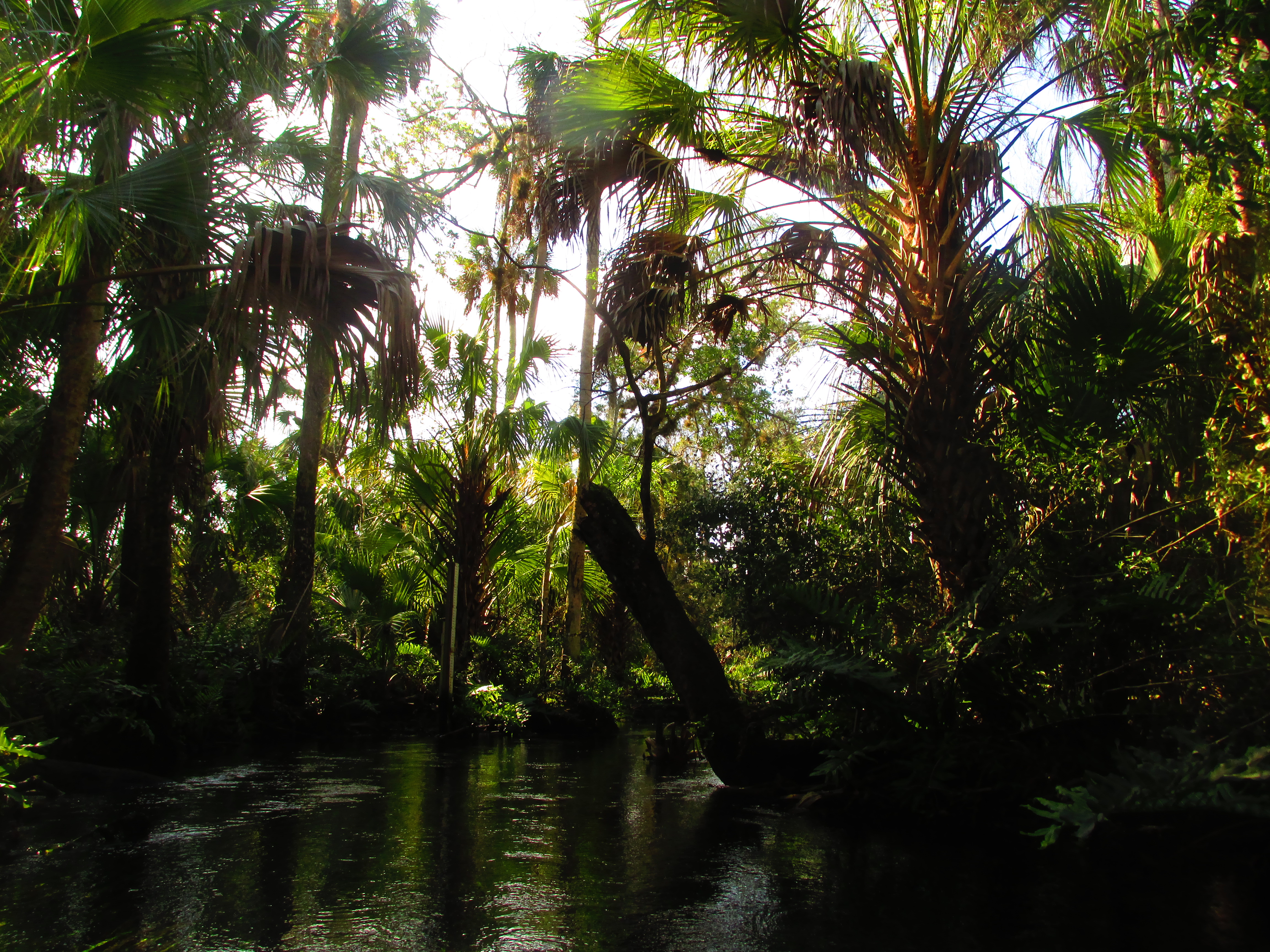I dug my oar or paddle or whatever they call that kayak thing that from a distance makes the user appear to be giving a series of semaphore signs into the water hard, and took a series of short quick slaps of the water in order to gather a little momentum in the shallow water. I moved away from the settlement and back into the swamps, still learning how to guide my craft with this awkward pole and ducked down for the tree to then make a hard left to avoid the larger creek that led to more houses and settlements even if it had at the source a similar if not larger set of springs. I was gliding over the bottom that was still crystal clear despite that the water was flowing hard in the opposite direction. Nothing like the muddy tubby turbidity I paddle in about Fort Mudge and environs on my aquatic excursions. I could see though the water like moving sheets of glass and suddenly the bottom dropped out. The creek was increasingly narrow. Plants and trees were close sometimes I had to paddle my way between large trees. Oh god, are these covered in spiders? I am sure that’s a spider on me! I am not used to being touched by plants that look like this. The water ran faster and faster. Shallow in many places, something I would have not even gotten my knees wet had I jumped out of the craft and walked away, but now there was a huge deep hole beneath me.