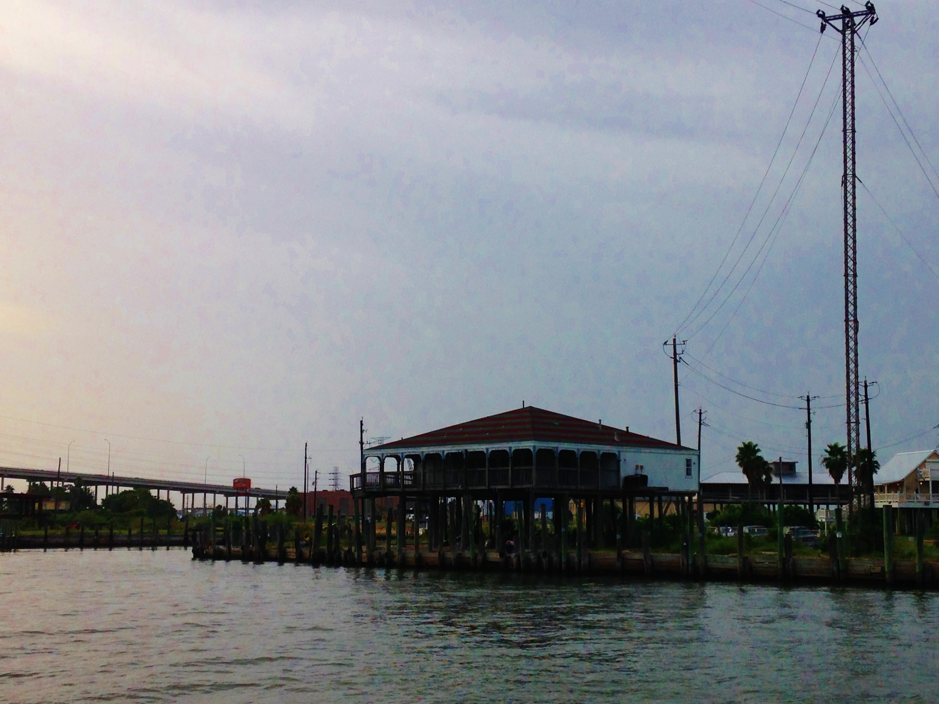 The road to Kemah was determined by the guidance system that came with the rental car so I cannot speak of this in any detail as to other potential scenic routes or some turn the locals would know in order to avoid the traffic since for the most part I was stuck in traffic crawling along to the coast. The summer heat had made a tea of the air and while I pride myself on being one of those people who “don;t use air conditioning” (nor can afford the electricals bill), the car had the windows tight and the cold stale Legionnaire’s Disease air was filling the car in order to bring some relief.