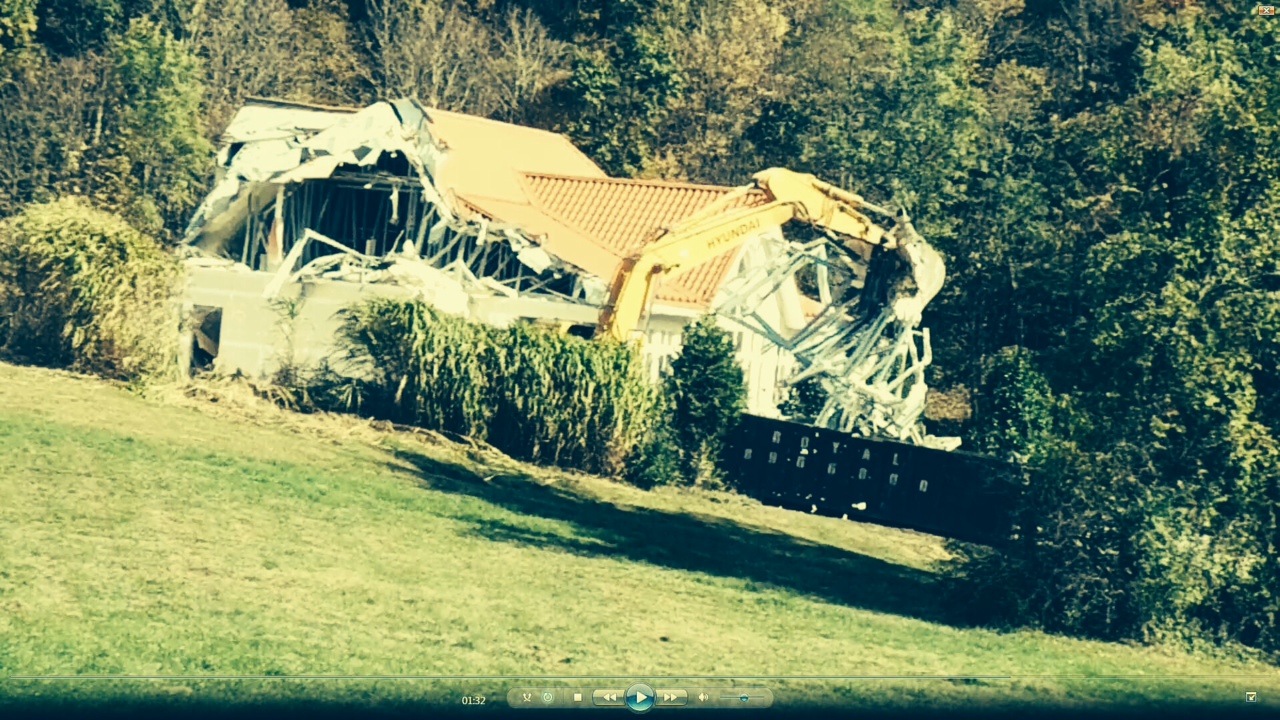 Large machines, driven by unknown hands, came to knock down this structure. The huge dinosaur machines went crunch, crunch, crunch and in a matter of five days, one day for each year the mansion was under construction, was torn down, sorted into boxes, and the remainders buried under the land. The machines scooped up all the plantings and took them away.