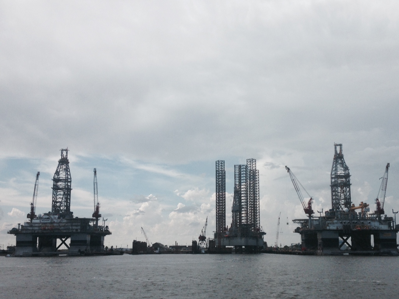 Today oil rigs being repaired vie for a skyline along with cruse ships on their way to and from other places. The downtown is like Brigadoon as are so many “historic downtowns” – existing for a moment and then vanishing. Several building downtown still bare the scars of various storms, social economic and natural. One store, an antique shop, was apparently a much larger place according to the proprietor, a suspicious older woman who took my interest as some type of preparation for a heist, least the total crap that was her inventory stolen in some Oceans 11 incident… It was a long time ago since this storm and still upstairs was closed, a curtain held off the back end and it was clear that whatever this place had been before become a junk shop was much grander and now entirely a footnote in history.