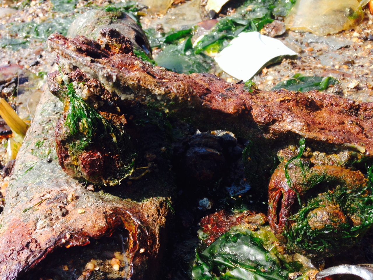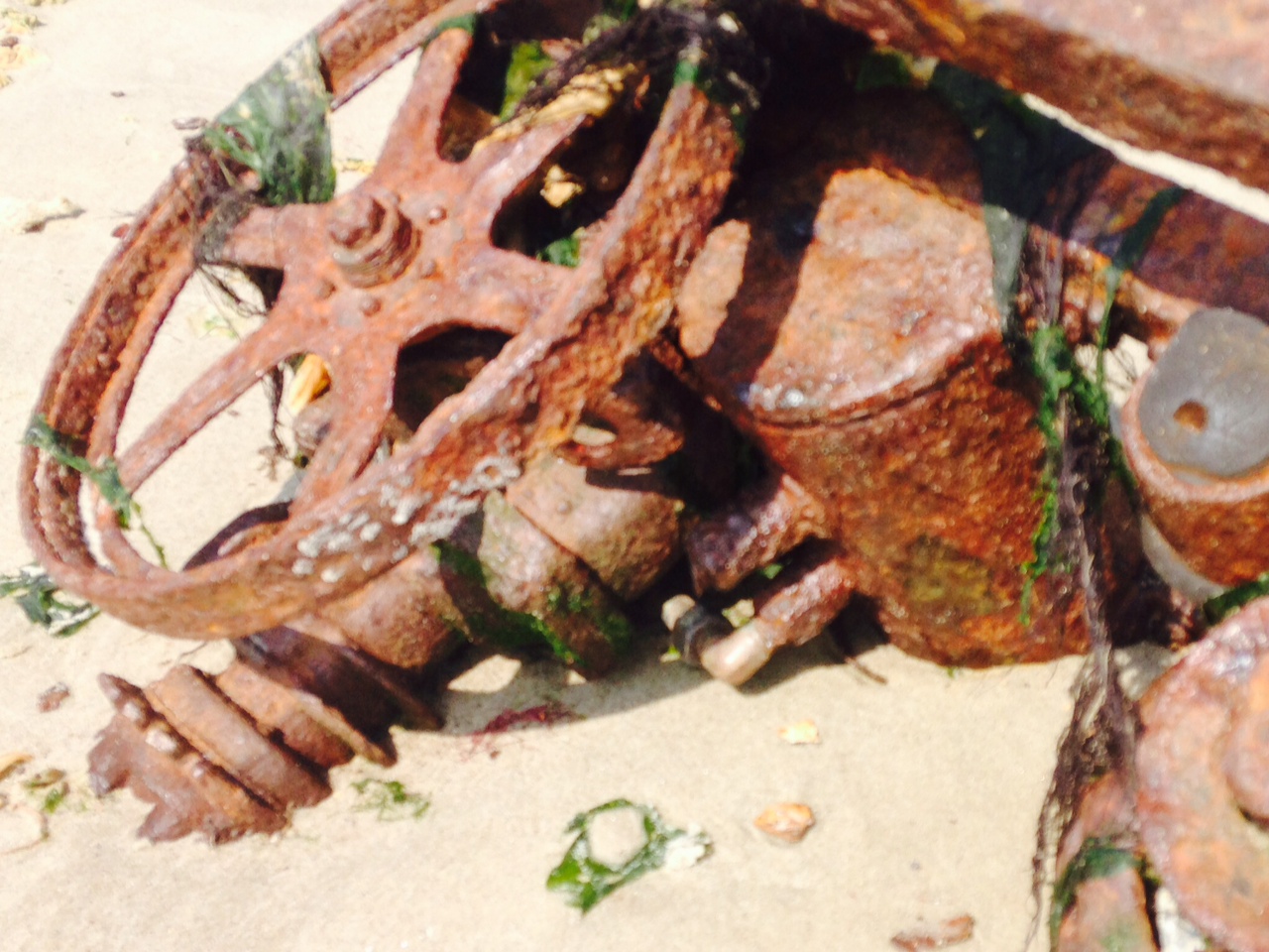 Among the glass there are some metal objects. Some are larger, safes, machine parts, a great deal of pieces of plumbing and heating systems, electrical work, and a good amount of spark plugs. The salt in the ocean makes short work of these items and many are rusted lumps of unknown form and former utility. Here and there some items of stainless steel are to be found. Mostly forks and the odd pot top. I was actually surprised that there was a representation of metal in this midden pile since it was even then valuable. I can only imagine that those items today assembled on the shoreline in one large rust farm were small odd bits not worth hauling to the scrapyard for a few cents.