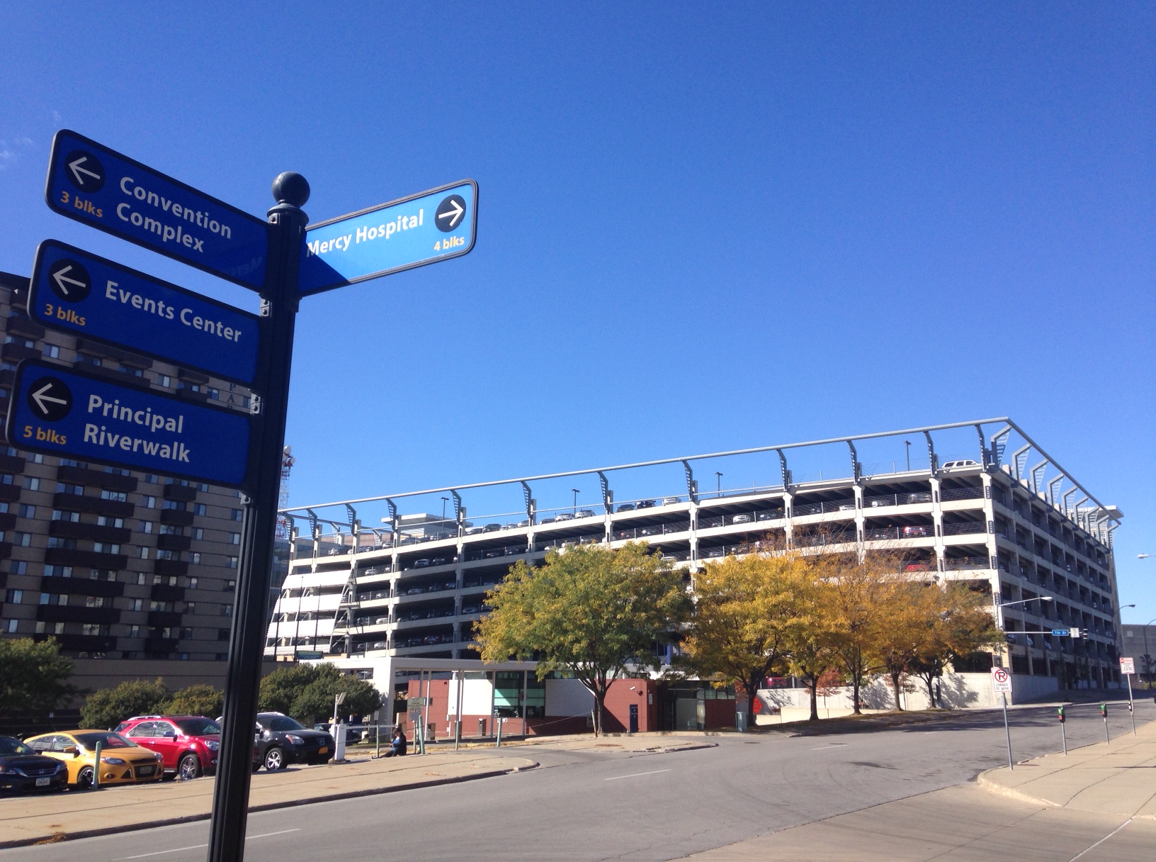 Among the remaining edifices of old that remain are the cement towers and monuments to current industry. A set of bulky artless Neo-Brutalist buildings shoved together and surrounded by streets that are more moats of protection than passageways of movement. Sidewalks are for the most part devoid of pedestrian traffic and downtown has an atmosphere of harsh edges that must bite ever harder in the deep and dark winter. These new buildings are indifferent structures built by the likes of I. M. Pei, Le Corbusier, Ernő Goldfinger and other criminal minds who believe that enough cement and tinted glass can solve all the messy elements of the human condition. These silent machines and are fed their occupants each day through skyways connected to the parking lots shielding all from the elements and whatever happiness a summer blue sky may bring. From my hotel, I had a view of the downtown and each morning watched the same line-up of cars in the morning commute ritual unfolded the little toy cars lining up in the many parking garages exactly the same as I had seen the morning before and perhaps as my grandchildren will one day witness… as long as they don’t tear down the Holiday Inn by the medical center or run out of oil.